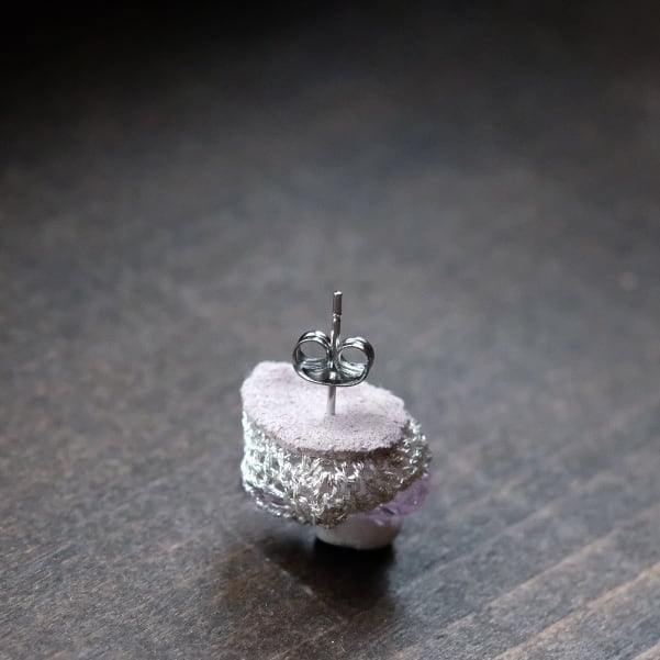 こちらはラベンダーアメジストを使用したピアス。