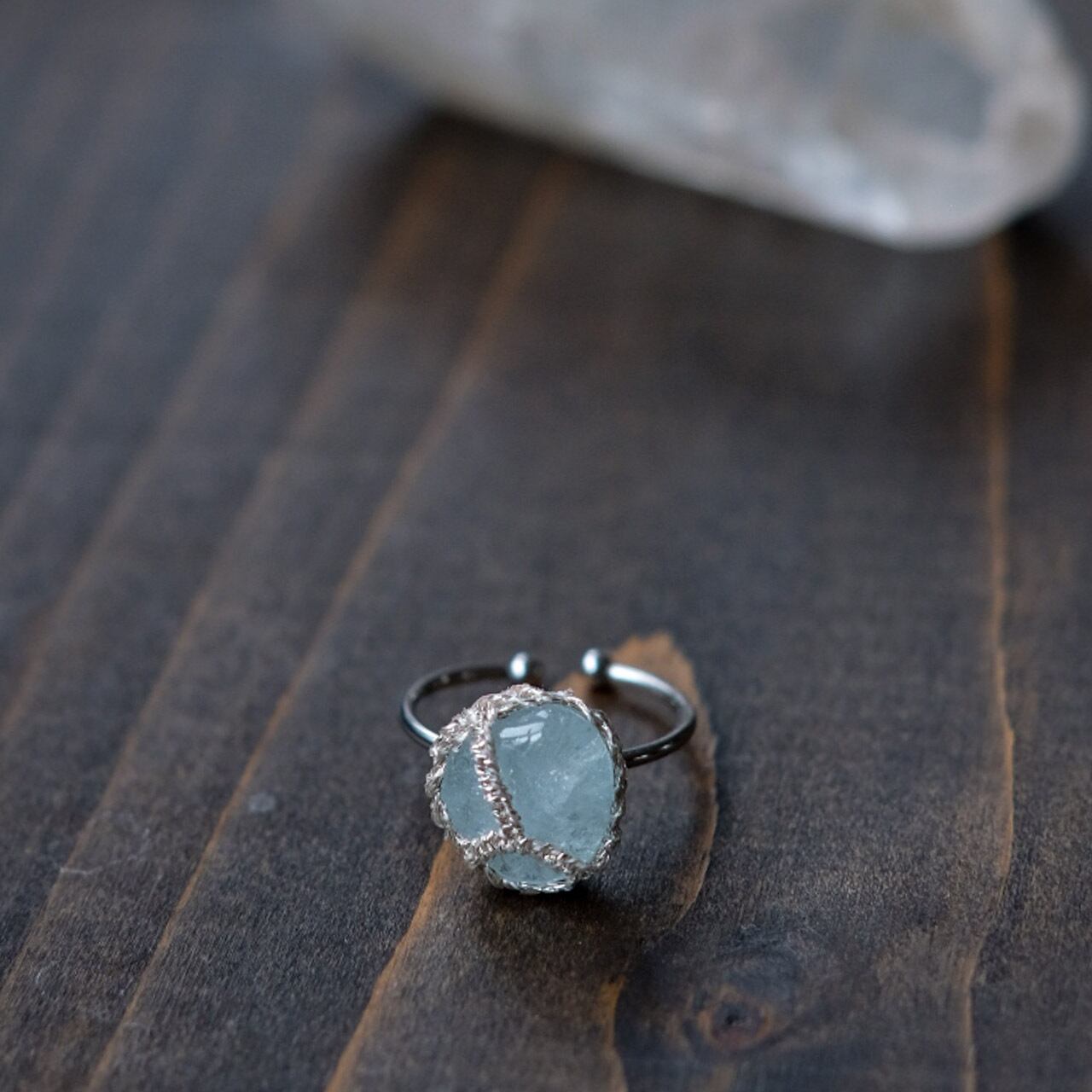 ベリルという鉱石の仲間。本来のベリルは無色透明で、含有する鉄によって青くなったものをアクアマリンと呼びます。