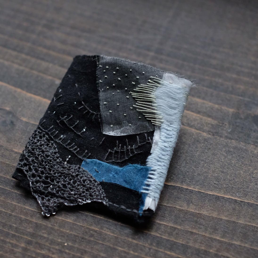 色々な素材を集めて自由に刺繍をするというのが今回のブローチのテーマ。