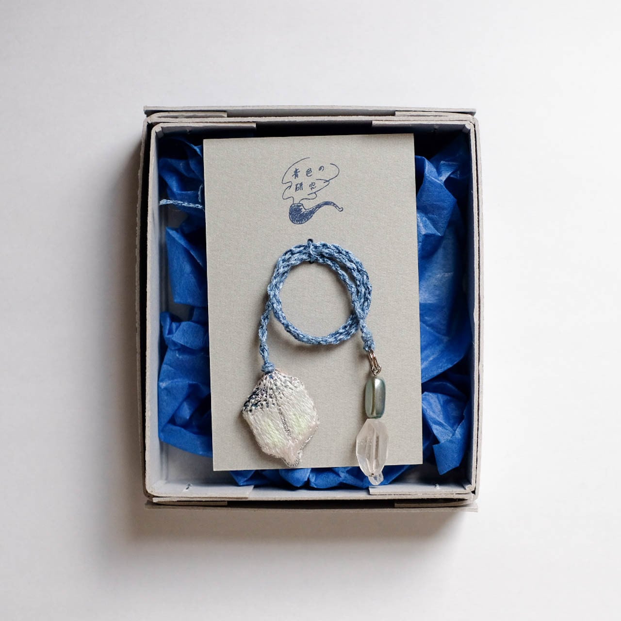 ラメ糸と刺繍糸の重なりによって微妙な色の変化と控えめなきらめきを生み出しています。
