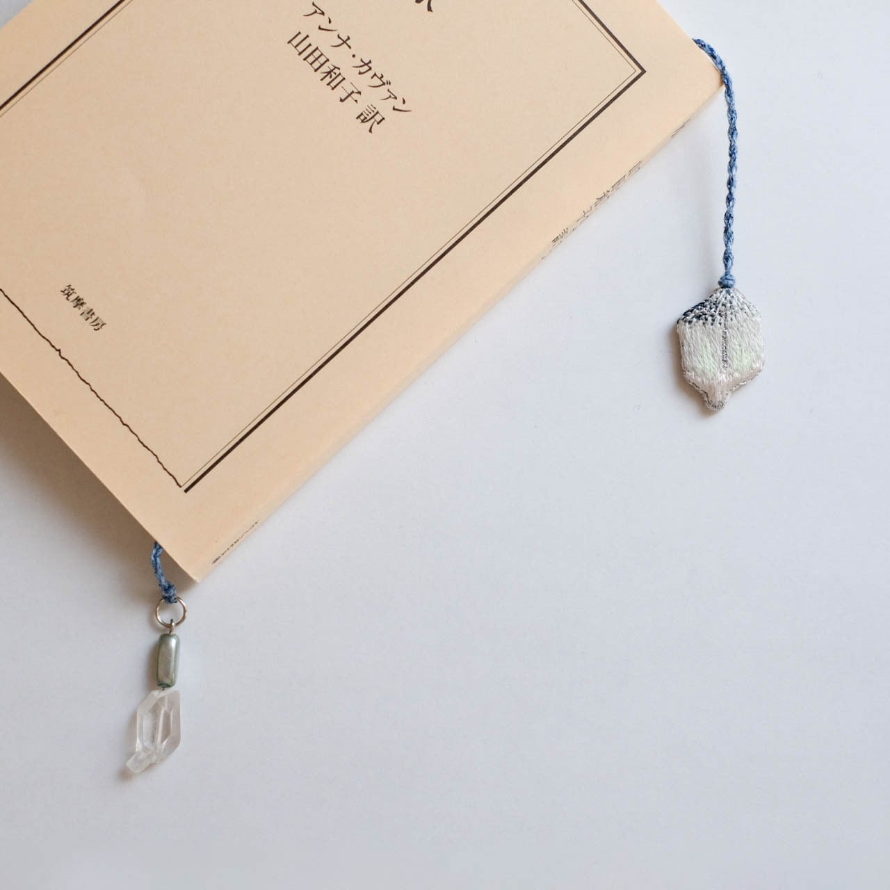 両端につけたチャームの大きさと重みで本から外れないようになっています。